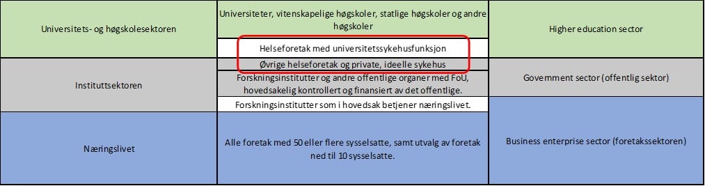 Nasjonal og internasjonal sektorinndeling for FoU-statistikken:
