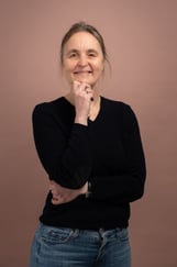 Portrett av dame med lyst, halvlangt hå som smiler mot kamera